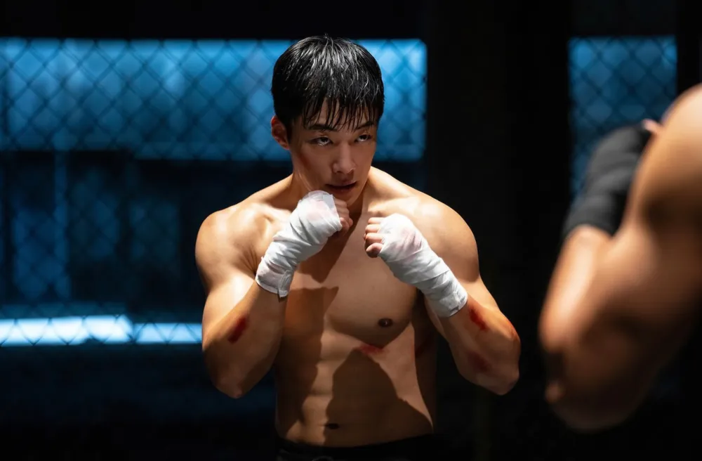 백정의 양옆에 황찬성과 이시현이 서 있는 장면도 눈에 띕니다. 다만 일부에서는 이시현의 비중이 빌런의 포스를 깎지 않을까 우려하는 시각도 있지만, 개인적으로는 김주환 감독이 캐릭터 밸런스를 잘 조절할 것이라 생각합니다. 백정은 건우의 잠재력을 알아보고 그를 어둠의 리그로 끌어들이려 하는데, 단순한 스카우트 제안이 아닌 가족과 지인들을 짓밟아 건우와 우진을 지옥의 링으로 몰아넣을 것으로 보입니다. 예고편 초반의 어두운 배경에서 석고 붕대를 감고 싸우는 건우의 모습은, 백정의 예언이 현실이 되었음을 보여줍니다.